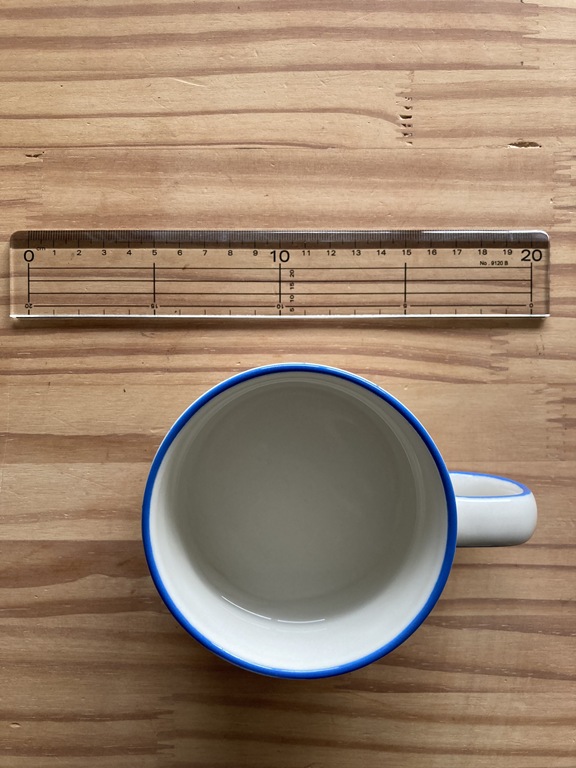 マイクは口から20cm離す。定規で距離を確認する。そして斜め前方。