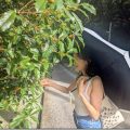 たとえばこのように道路にはみ出た木の枝とか!赤や茶色や黄色の葉っぱも、秋ではなくて夏の色ですね。