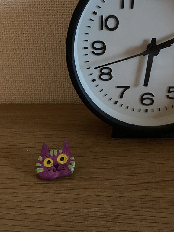 今年の夏のこと。目を見開いた猫のピンバッチを贈られました。なぜここに居るのかというと、猫はわたしが寝ている間に起きて見張ってくれているのです。(たぶん)