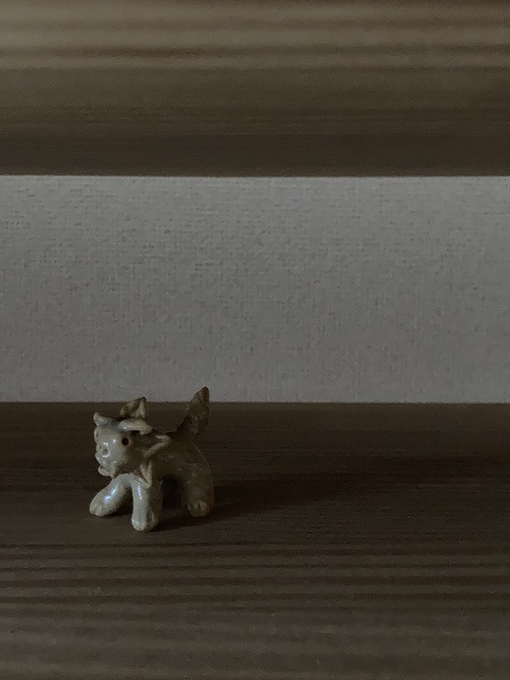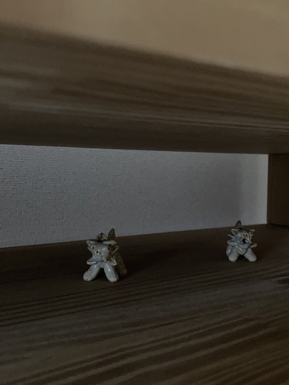 手前に並んでいるのが、小さすぎてよく見えませんが、シーサーのちいさな小さな置物です。