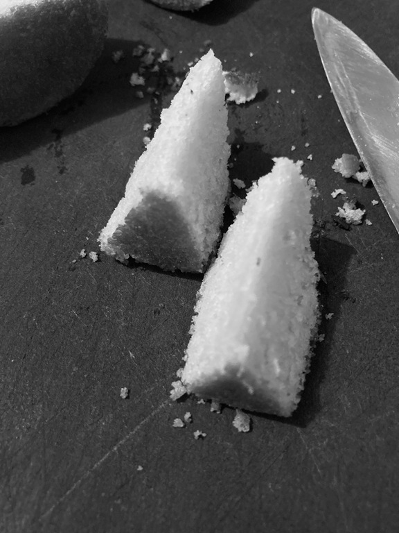 写真のマドレーヌをわたしが食べられるように細工した方法を、写真でご紹介します。