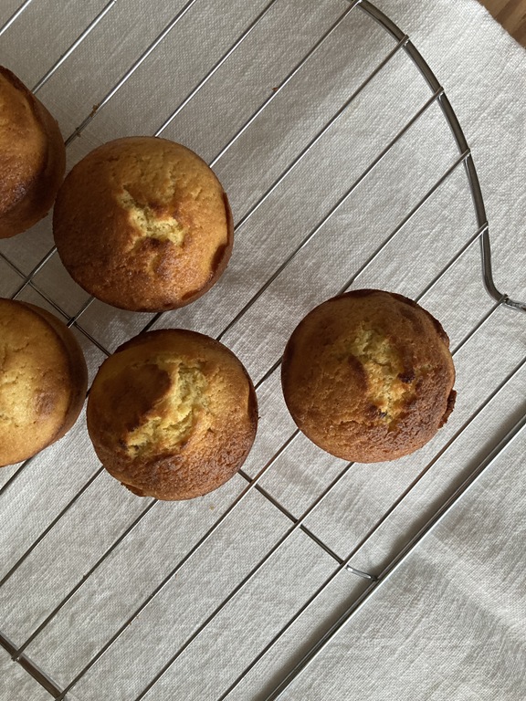 - 220℃のオーブン**で10分焼いたら、200℃に温度を下げて3分焼く。(焼き時間は合計13分くらい。竹串などを刺して何もついてこなければOK)