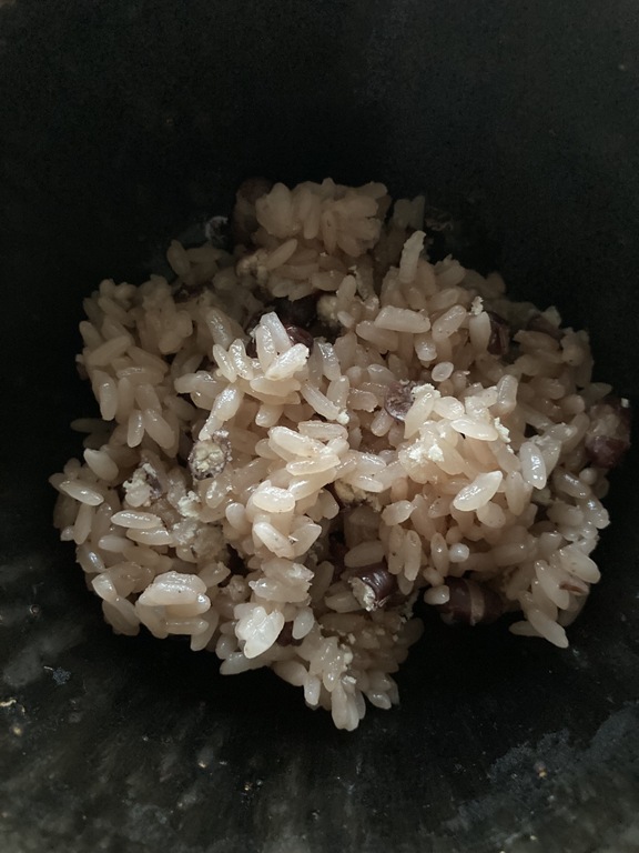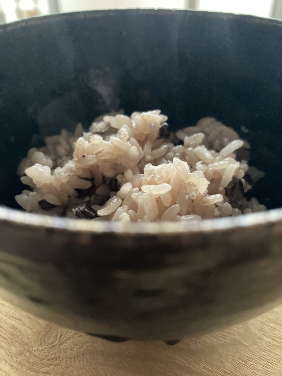 一部の小豆がホクっと崩れた感じになっていて、お米は粒しっかりが好き。ごま塩は家ではふらない派です。(←家にないから)