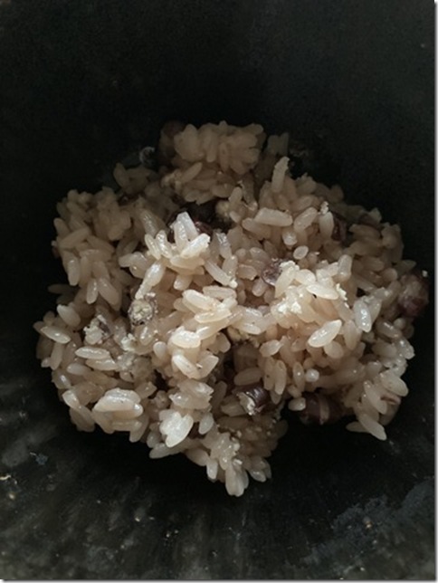小豆が冷めたら炊飯器にもち米と小豆と汁を入れてスイッチオン