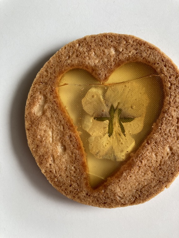 袋から出したとき心臓が一瞬とまった。スミレのステンドグラスのクッキーをプレゼントされたのです。