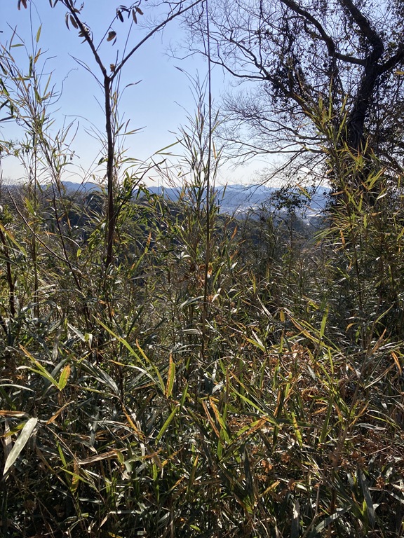 わたしは源氏山の上のこういうところで水筒開けて休んでます。