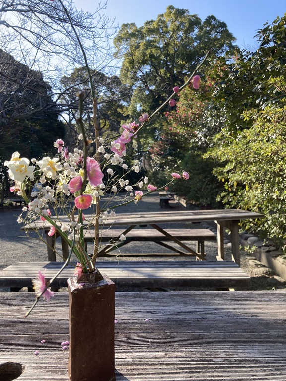 梅の季節には、ベンチに腰掛けたわたしの目の前に、お花が活けてありました。香るぅ~