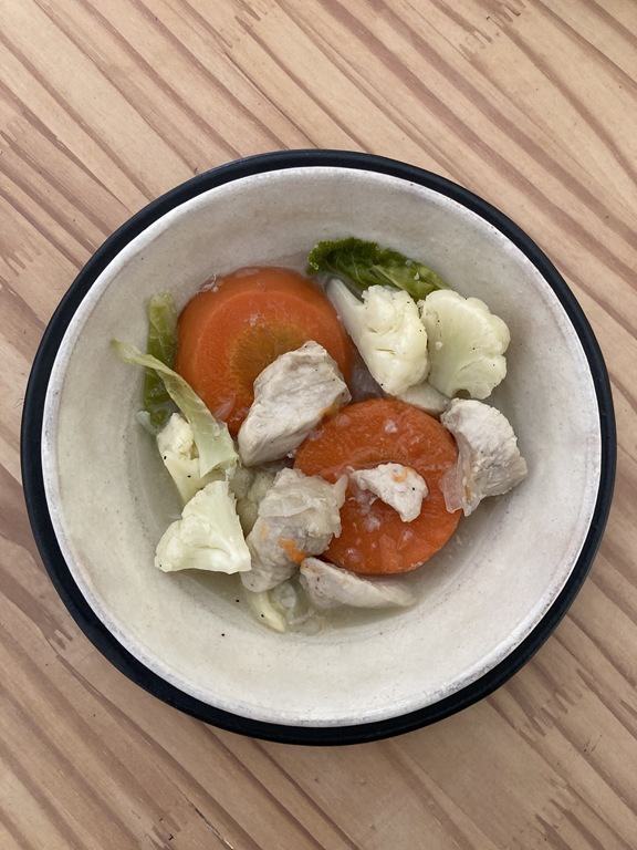 人参と鶏むねにくの煮込み、カリフラワーのハッシュ