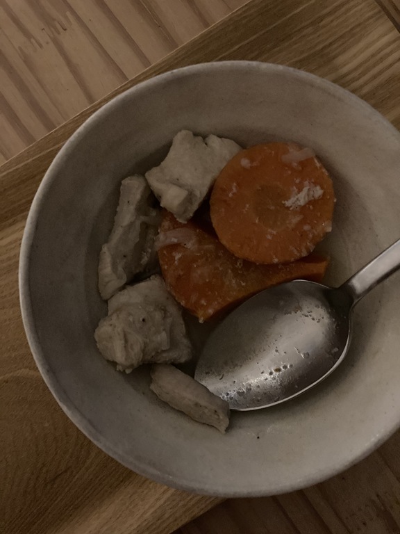 この煮込みのよいところは、とにかく(わたしにとっては)大量のたんぱく質をお腹に安全に摂れるところ。
