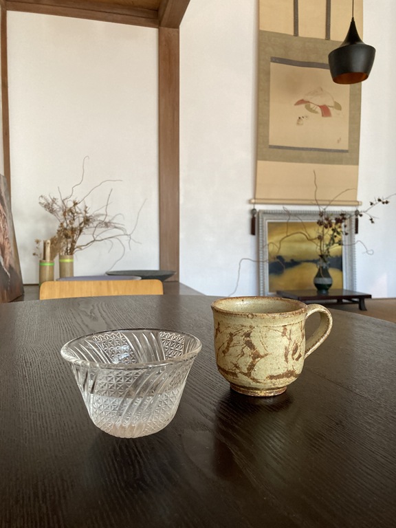 うつわの縁に向かって筆でしゅっと絵を描いたみたいなお醤油かっこよいな。