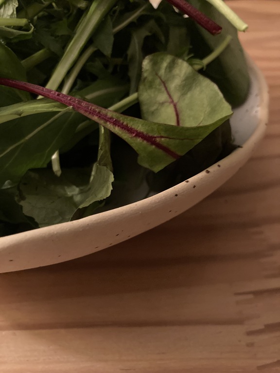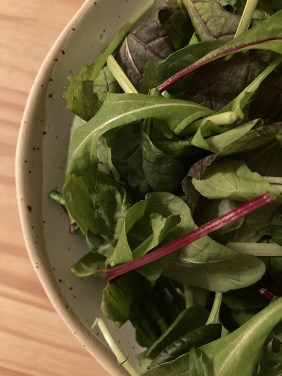 葉っぱの味が濃いのでそのまま1枚ずつつまんで口に入れ、植物のあじわいをたのしむ晩ごはんです。