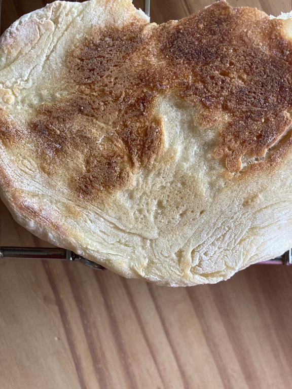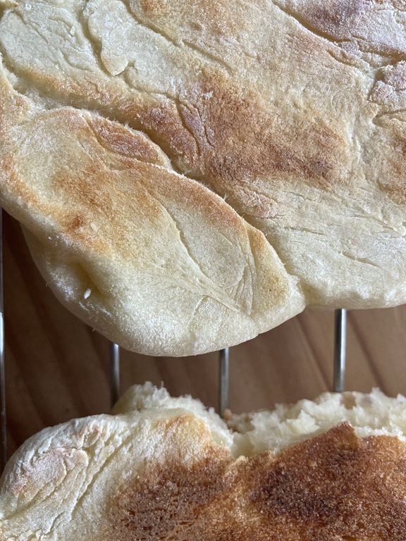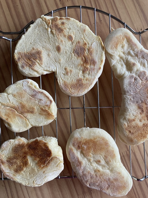 フライパンで焼いたパン(レシピは『ホームベーカリーのパン生地を:フライパンで焼いたパン』にあります)