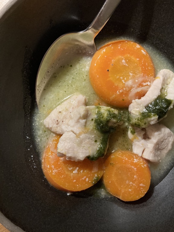ホットクック製 とりむね肉と人参の煮込み 緑のソースちらり