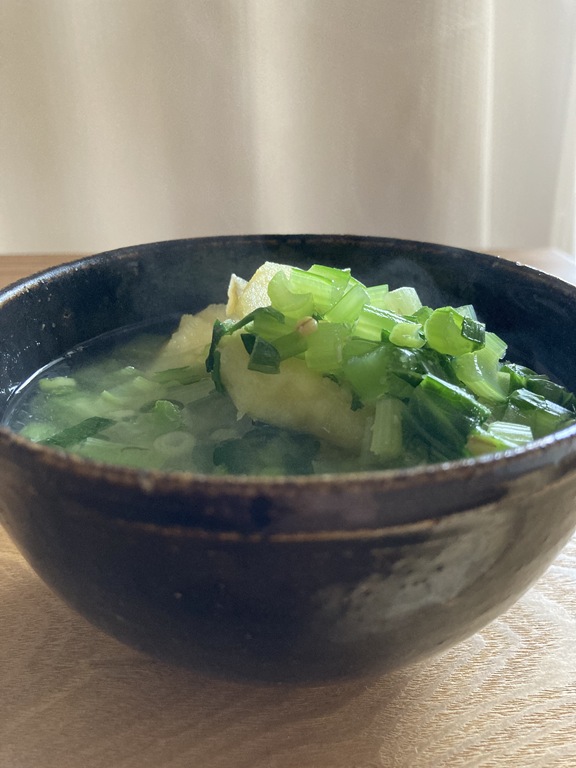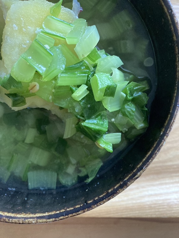 小松菜は野菜じたいに塩味があるので味噌などひかえめに。